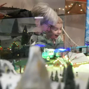 See a marvelous miniature winter village, twinkling with lights – a seasonal delight!